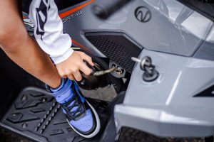Linhai 110 oferă schimbarea clară și ușoară a vitezelor, cu levierul amplasat convenabil pe partea dreaptă, la îndemâna copilului. Sistemul permite trecerea rapidă între mers înainte, marșarier și neutru, fără efort. Pentru siguranță suplimentară, ATV-ul este echipat cu un sistem magnetic care oprește imediat motorul dacă juniorul se ridică de pe șa, reducând riscul de accident. Pentru începători, reglajul mecanic al accelerației limitează puterea motorului și viteza maximă, astfel părinții pot adapta ușor comportamentul ATV-ului la nivelul de experiență al copilului, oferindu-le liniște sufletească și protecție.